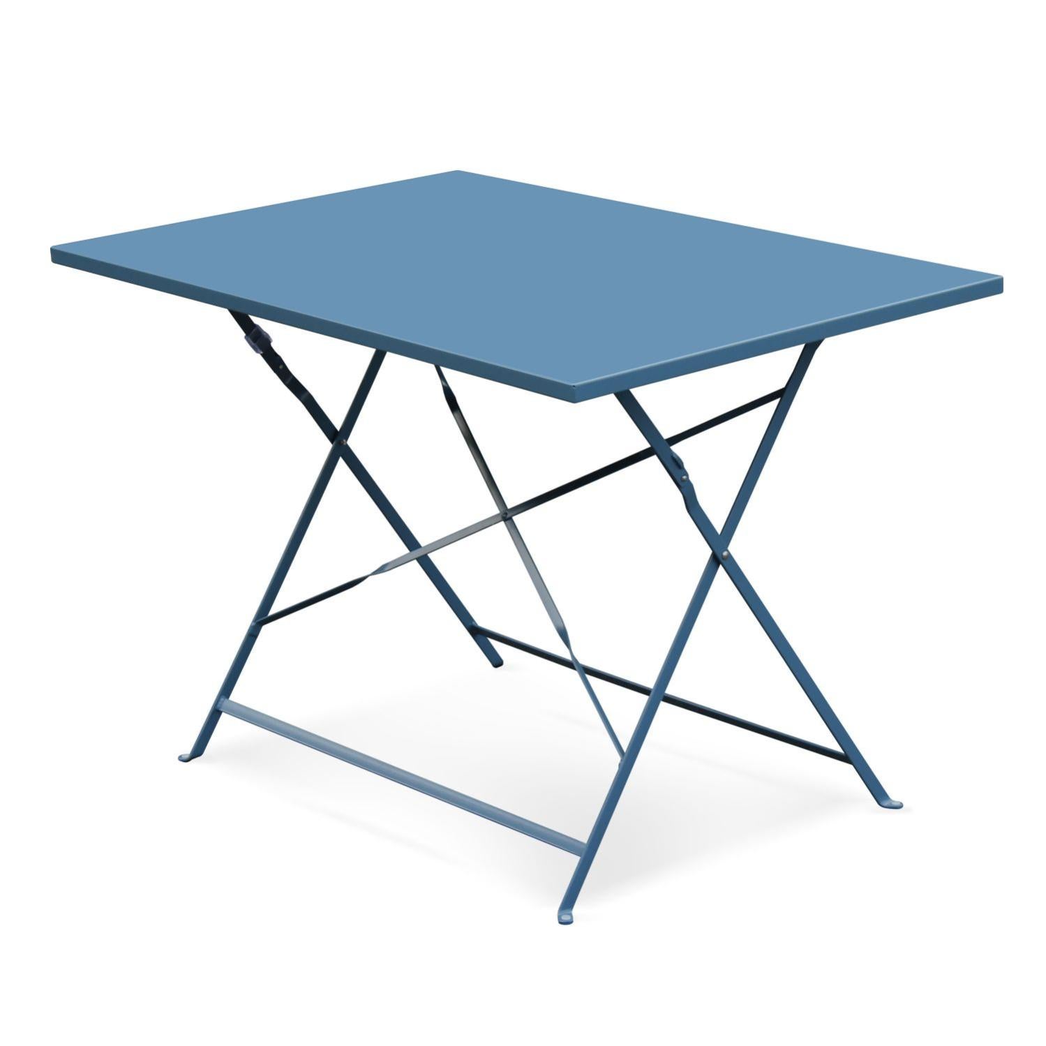 Table De Jardin Bistrot Pliable Emilia Rectangle Bleu Grise Table Rectangle 110x70cm En Acier Thermolaque Leroy Merlin