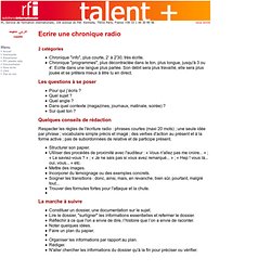Pour le prof (5) La chronique radio Des exemples d’activités pour développer l’écoute et la compréhension orale en classe de FLE!. La difficulté, c’est sans doute d’oublier qu’on fait de la radio et pas de la presse écrite !. Toute l’actualité sur le sujet Chroniques Consultez l’ensemble des articles, reportages, directs, photos et vidéos de la rubrique Chroniques publiés le mercredi janvier 21.