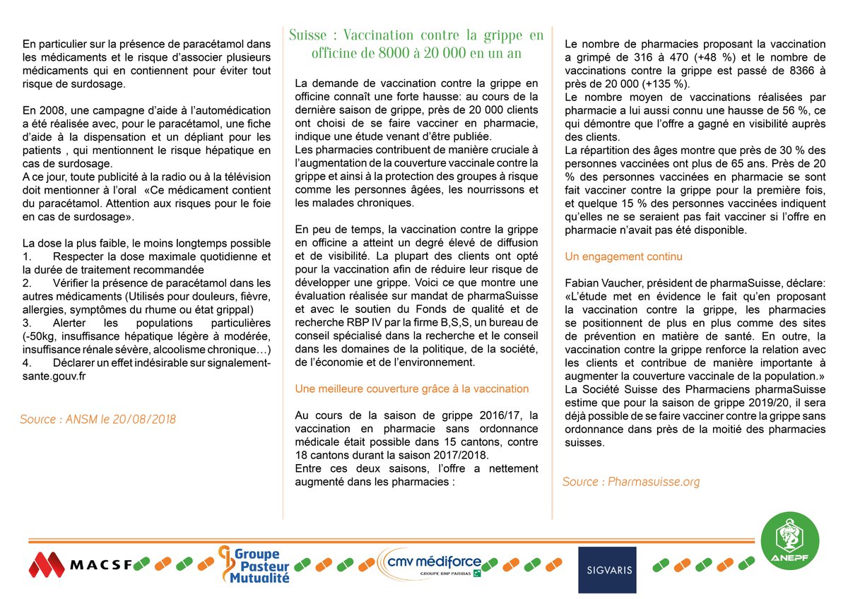 Pharma Anepf Des Envies Subites D Informations Recentes Serialisation Dans Les Etablissements De Sante Mesusage Du Paracetamol Prevention L Exemple Suisse De La Vaccination Contre La Grippe En