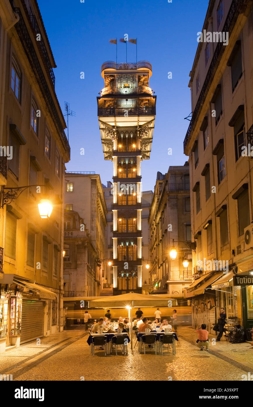 Portugal Lisbon Baixa Chiado Elevator De Santa Justa In Twilight Stock Photo Alamy