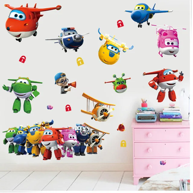 Autocollants Muraux Adhesifs 3d En Pvc D Avion Super Wings Jett Decoration Pour Maison Chambre D Enfant Cadeau D Anniversaire Aliexpress