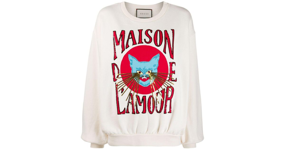 Buy Gucci Cat Print Logo Sweatshirt White For Womens At Goxip