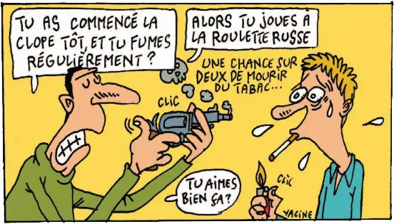 Découvrir la consigne de l’exercice Lire, sans commenter, à haute voix, les différentes propositions Choisir après un temps de réflexion parmi la liste de propositions en réponse à la question « Pourquoi fumeton ou commenceton à fumer ?. « Fumer tue » ou l’usage de la peur Adrien Barton publié le 02 décembre 15 2 min Pourquoi estce si difficile d’arrêter de fumer?. Les avertissements sur les paquets de cigarettes sont des messages écrits sur les paquets de cigarettes et de tabac visant à informer les consommateurs des risques qu'ils prennent en consommant cette substance En effet, le tabac peut avoir des effets graves sur la santé La Conventioncadre de l'OMS pour la lutte antitabac recommande ces avertissements 1.