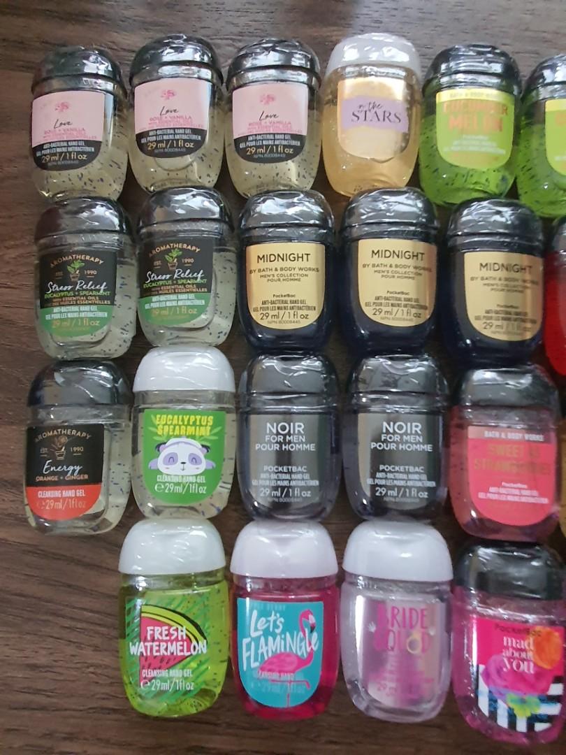Bath and Body Works AntiBacterial Hand Gel 5Pack PocketBac Sanitizers, Assorted Scents, 1 fl oz each 43 out of 5 stars 3 $1792$1792 ($358/Fl Oz) $1999$1999 $498 shipping. Bath and Body Works Aromatherapy Stress Relief Eucalyptus Spearmint with Essential Oil PocketBac Sanitizer Hand Gel 5PACK 48 out of 5 stars 696 $2432. Kill the germs with Bath & Body Works hand sanitizer!.