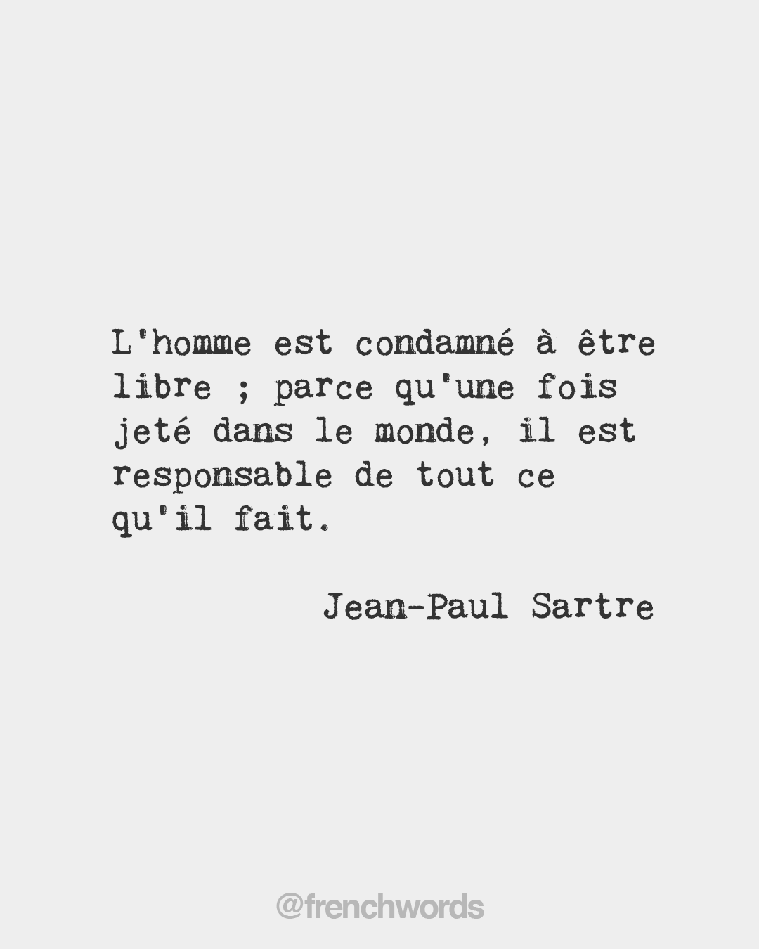 French Words Man Is Condemned To Be Free Because Once Thrown Into The World He Is Responsible For Everything He Does Jean Paul Sartre French Philosopher 1905 1980 T Co Fumril3iw9