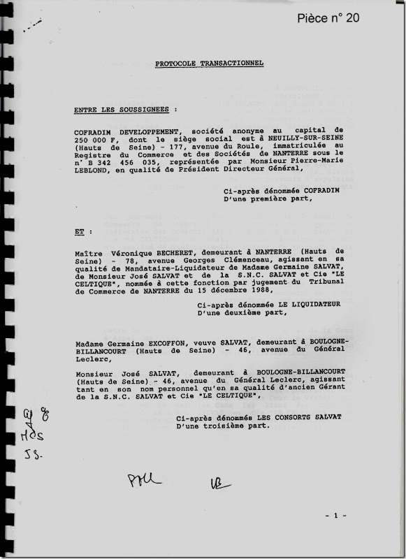 Rapport De Maitre Marc Baroni 48 Protocole Transactionnel Signe Le 9 Mars 1990