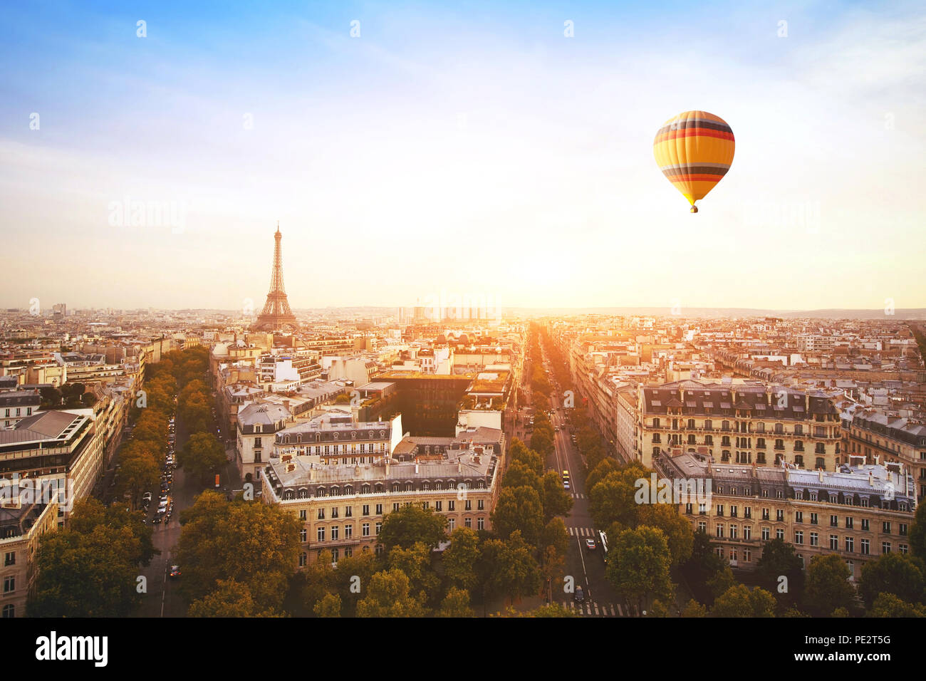 Dream Travel Destination Beautiful Panoramic View Of Paris With Eiffel Tower And Flying Hot Air Balloon France Stock Photo Alamy