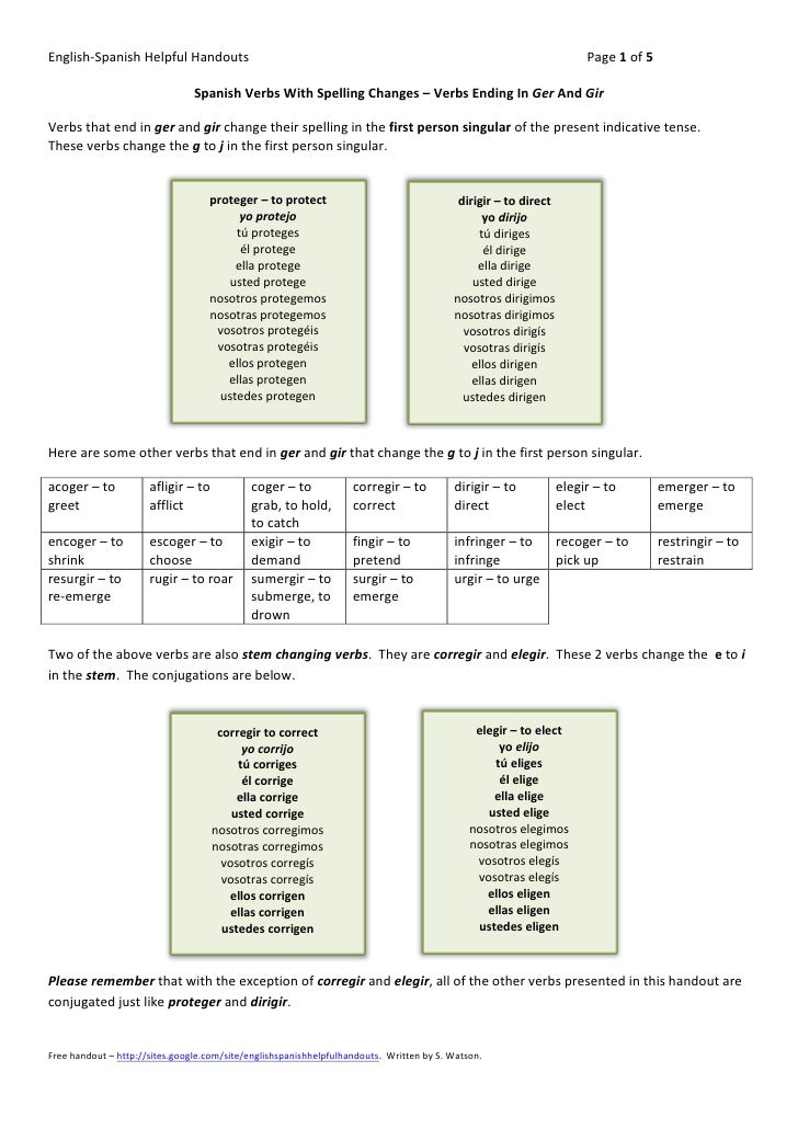 Spanish Verbs With Spelling Changes Verbs Ending In Ger And Gir