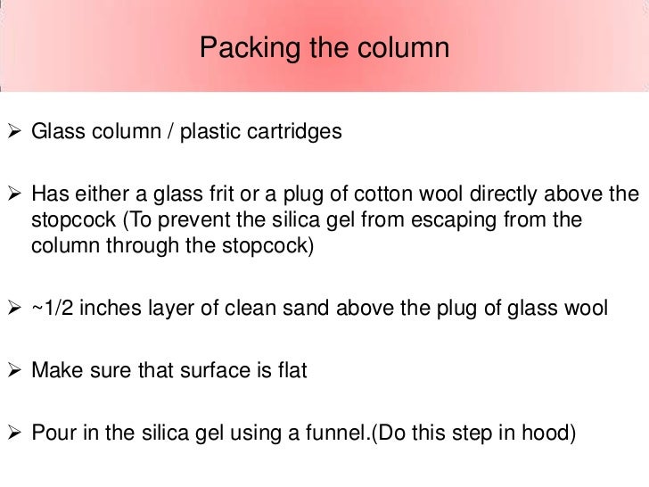 Since each component of a mixture has its own particular size, shape, polarity, and solubility, it is a matter of using those distinguishing characteristics to isolate and purify each individual component present within a mixture This can be accomplished in numerous ways, though the principle is always the same Utilizing the affinity of certain molecules to others to slow their movement. Preparative chromatography is a versatile methodology that is widely used within the pharmaceutical and fine chemical industry For medicinal chemists, chromatography is often the quickest way to obtain gram quantities of each enantiomer of a chiral compound, avoiding the need for enantioselective synthesis in the early stages of drug discovery. How to setup a flash chromatography silica column and actually succeed at separation Overview The following content provides a detailed, low tech classical way to run flash chromatography on a silica column The material presented below represents the collective wisdom generated by many people during a long time.