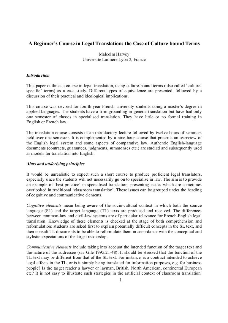 A Beginner S Course In Legal Translation The Case Of Culture Bound T