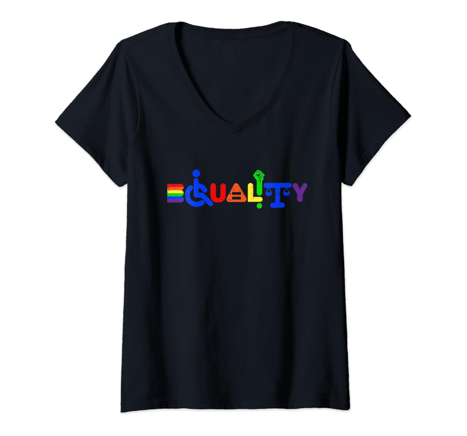 Amazon Com Womens Equality Gay Pride Handicap Feminism Anti Racism Rainbow V Neck T Shirt Clothing