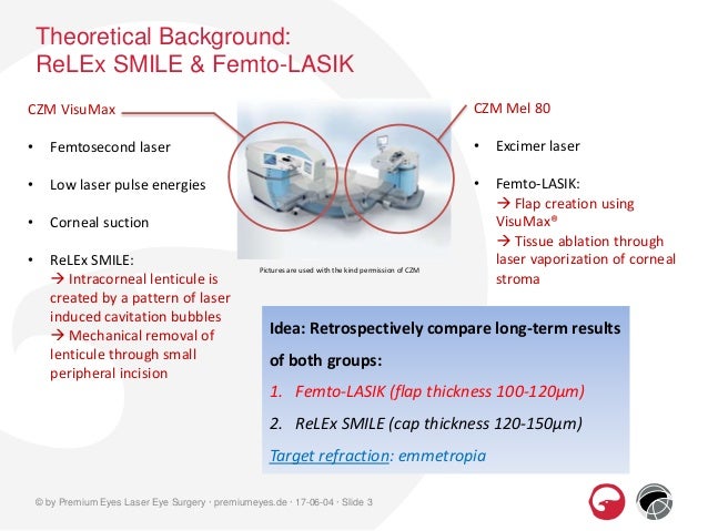 FemtoLASIK Jako první v ČR provádí Dr Stodůlka na soukromé oční klinice Gemini operace očních vad metodou LASIK femtosekundovým laserem Více se dozvíte na wwwgeminicz. FemtoLASIK (Femto laserassisted in situ Keratomileusis) eye surgery is a proven method of refractive surgery for the correction of a visual disorder In contrast to PRK, a FemtoLASIK surgery creates a corneal flap This means that the top layer of the cornea is not removed, but rather folded to the side like a small door. Femtosecond laser has been introduced in refractive surgery to create a thinhinged corneal flap without using any blade The current review was planned to analyse and compare femtosecondassisted laser insitu keratomileusis (LASIK), the latest refractive procedure, with conventional techniques in.