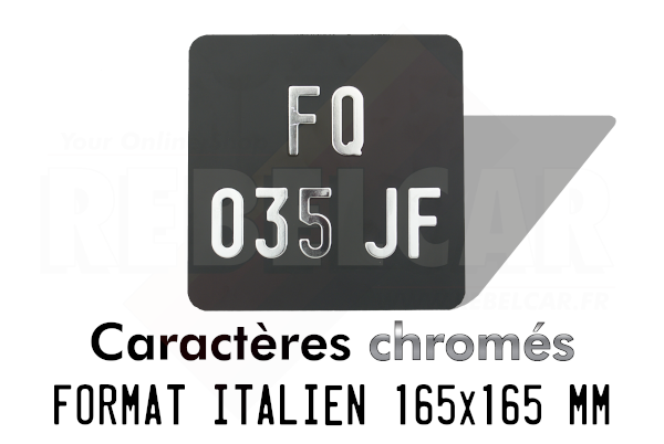 Plaque Moto Alu Noire Mate Format Italien 165x165 Mm Sur 2 Lignes Sans Listel Plein Format Avec Caracteres Gris Argentes Chromes