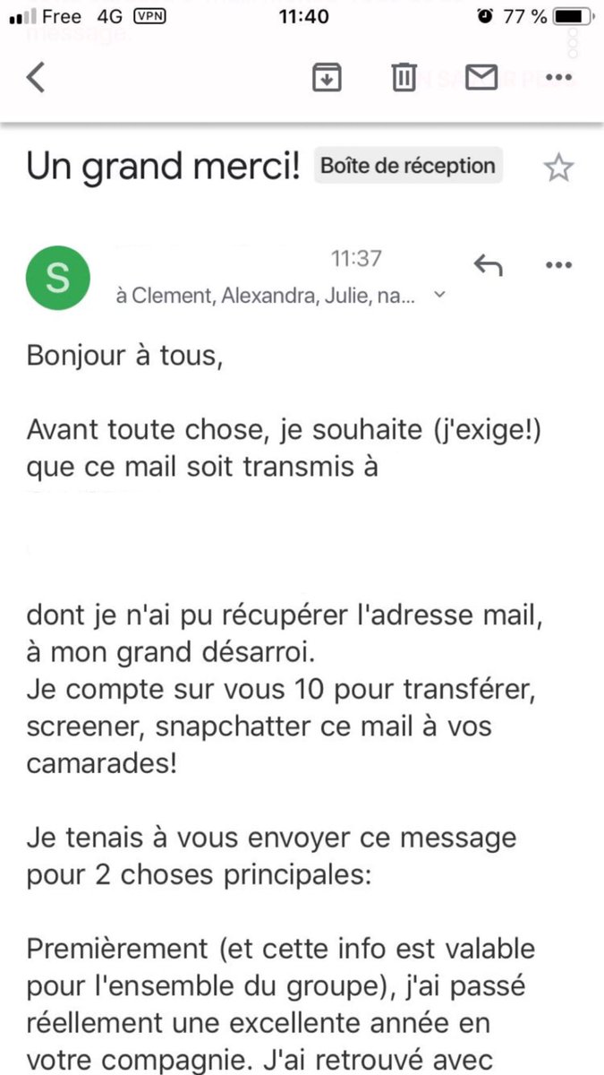 N’hésitez pas à me dire ce que vous en pensez, Bryan Modèle d’email # S’intéresser aux visiteurs de son profil LinkedIn Si vous êtes sur LinkedIn et que vous partagez même très peu de contenu, songez à contacter les visiteurs de votre profil LinkedIn en leur envoyant un mail Traduction Bonjour (NOM),. Traductions en contexte de "l'adresse mail" en françaisespagnol avec Reverso Context Et l'adresse mail pour répondre est anonyme. Plus tard, ce mail sera rédigé en forme impersonnelle (il ne s’adresse pas au destinataire en tant que personne, mais à sa fonction) comme les écrits professionnels traditionnels (sauf la lettre), quel que soit le degré d’intimité entre les correspondants Le mail (courriel) adressé à l’extérieur de l’entreprise.