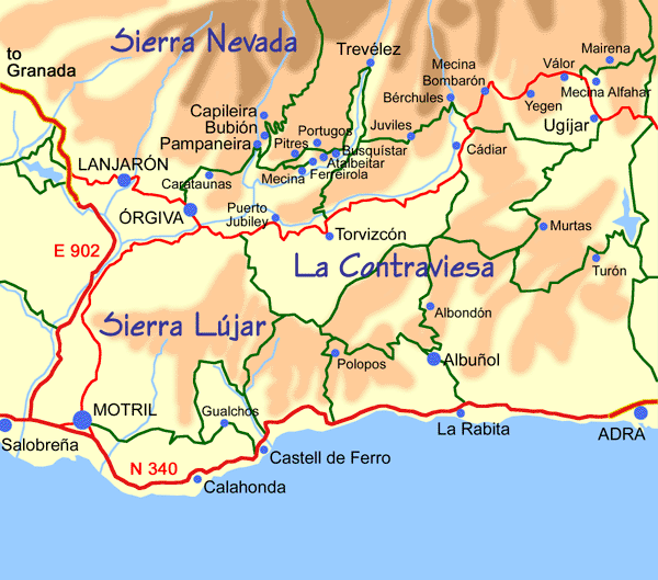 Mapa De Las Alpujarras Carreteras Y Pueblos