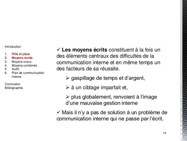 Probleme de communication en entreprise. Elle permet de vérifier et de détecter d’éventuelles anomalies en matière de communication interne dans l’entreprise et faire remonter par la suite à la direction les réclamations et les attentes des salariés, à travers un dialogue et une écoute active. 1 – Communiquer, facilite la créativité au sein d’une entreprise Lorsque vous appréhendez l’importance de la communication en entreprise, vous allez avoir une équipe capable de se compléterSur le terrain, les équipes vont être plus solidaires et cela va contribuer à renforcer l’état d’esprit des employésQuand ceuxci sont bien informés des objectifs à atteindre et. 10 conseils pour interagir en toute confiance Peu de gens ont totalement confiance dans toutes les situations de relation à l’autre La communication interpersonnelle est un art qui demande de l’entraînement et beaucoup de conscience Être en mesure d’engager une conversation, de la maintenir et de la conclure s’avère une compétence très utile, au travail, en amour ou dans la.
