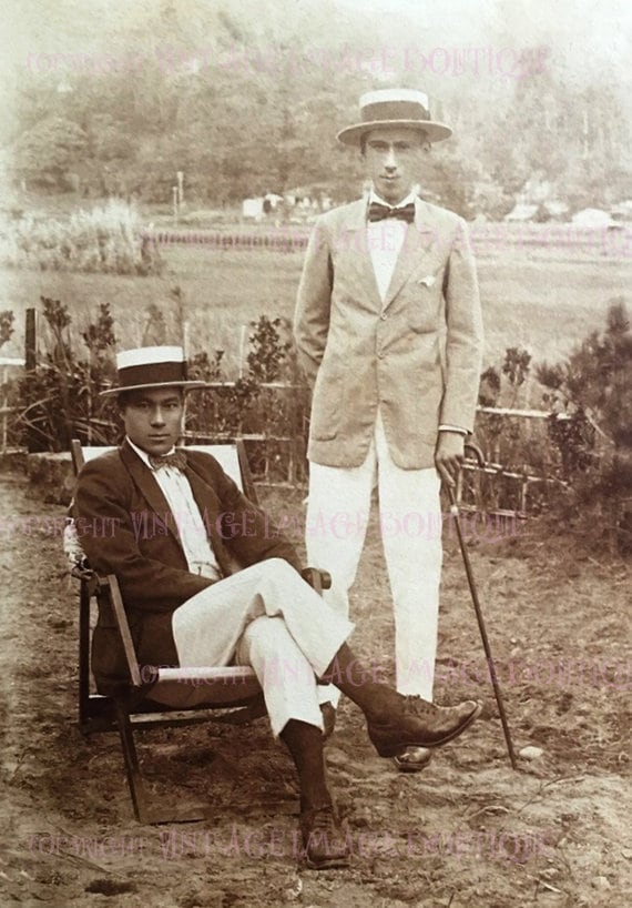Belle 19 Gay Hommes Japonais Aimant Couple Dans Boater Hats Etsy
