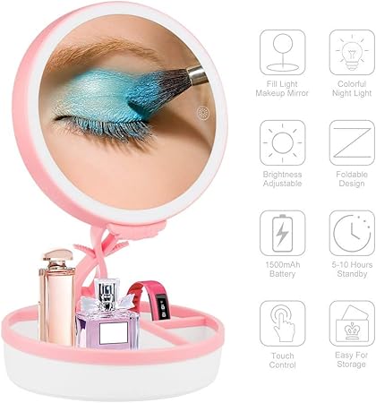 Portable Led Miroir De Maquillage Haute Definition Clarity Miroir Cosmetique Vanity Mirror Voyage Miroir Cosmetique Ecran Tactile Dimmable Led Pour Comptoir Avec Conteneur De Stockage Pour La Maison De Voyage Rose Amazon Fr