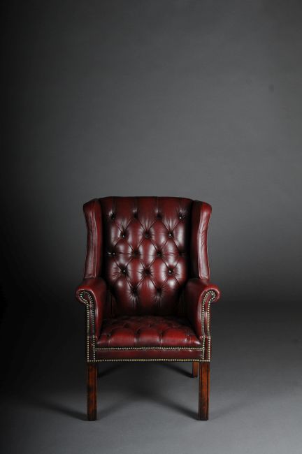 Fauteuil Anglais Chesterfield Queen Anne En Cuir Bordeaux Anticswiss