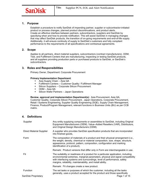 Supplier Pcn Eol And Alert Notification Sandisk