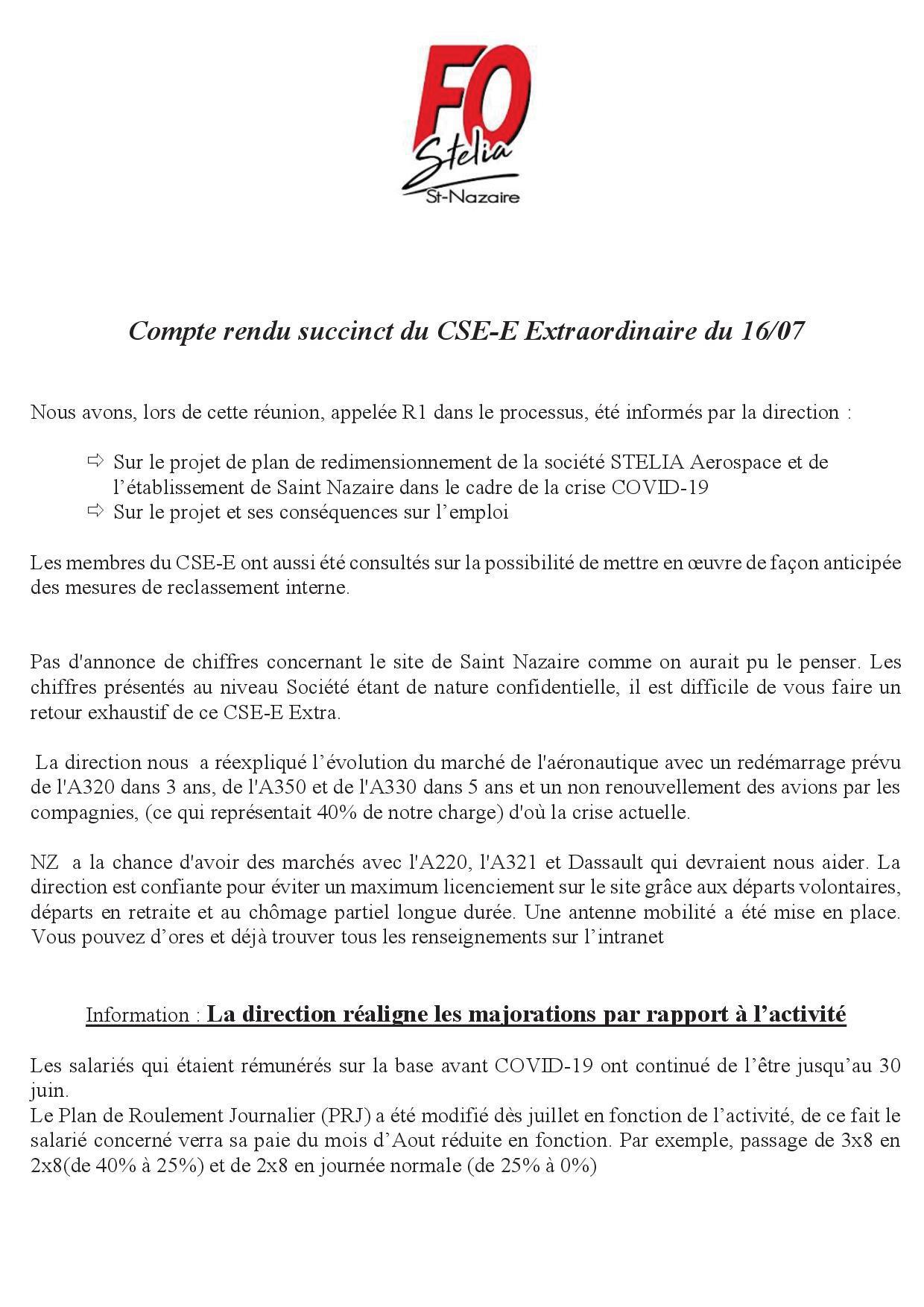 Compte Rendu Succinct Du Cse E Extra Du 16 Juillet