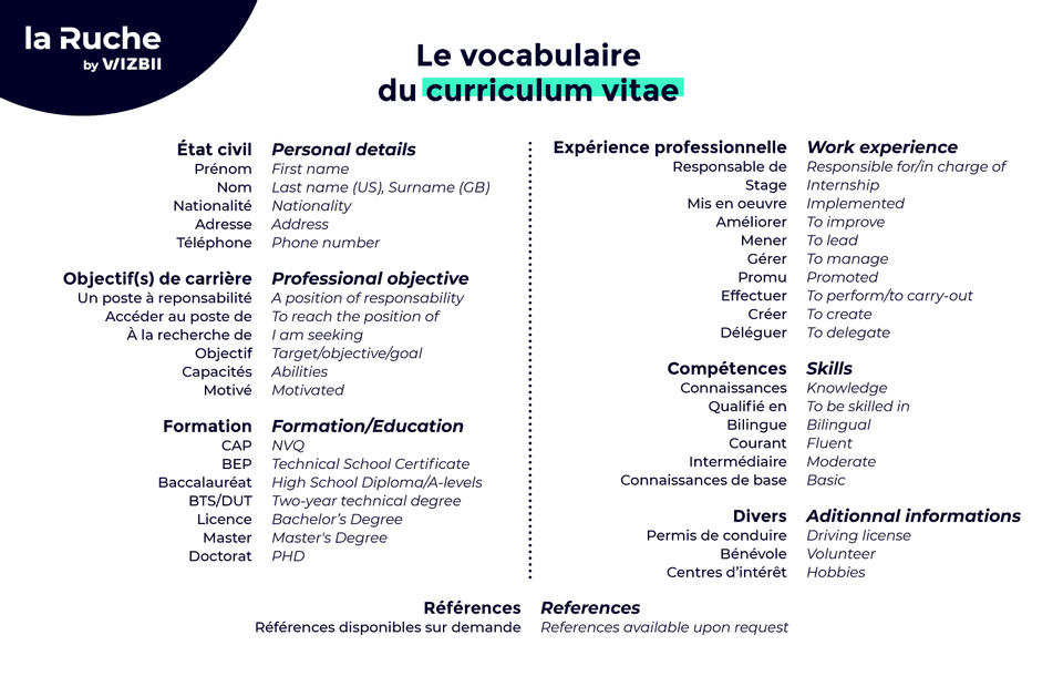 Comment Rediger Son Cv En Anglais Template De Cv Gratuit La Ruche Par Wizbii