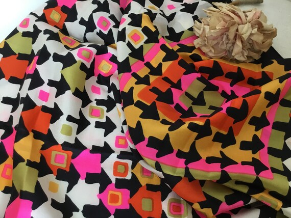 Vintage French Silk Scarf Black And Jewel Colours Paris Chic Etsy