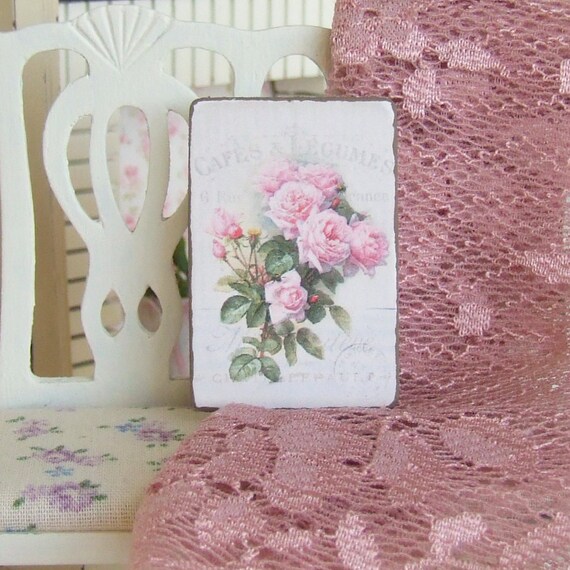 Dollhouse Miniature French Sign Pink Roses Picture Flower Etsy