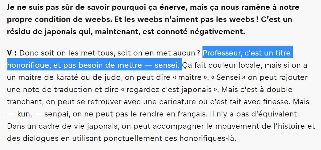 Saga J Ignore Si Le Traducteur Parle Des Sensei Qui Sont Des Profs Milieu Scolaire Mais Cela Me Rappelle Un Japonisme Anglicisme Vu Encore Trop Souvent En Francais On