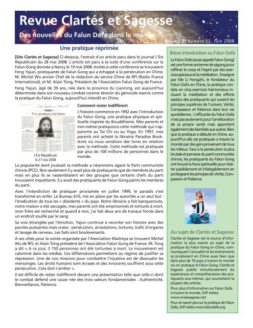 Presentation Du Falun Dafa Ou Falun Gong Une Ancienne Methode Pour Cultiver Et Raffiner A La Fois L Esprit Et Le Corps Histoire Et Sagesse Pour Tous