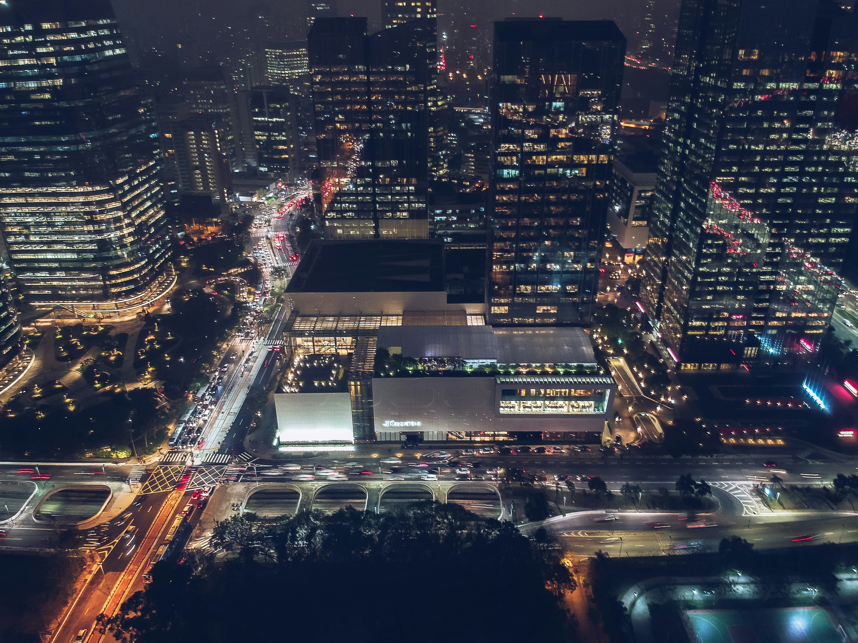Aerial Photography City View At Night Hd Wallpaper Wallpaper Flare
