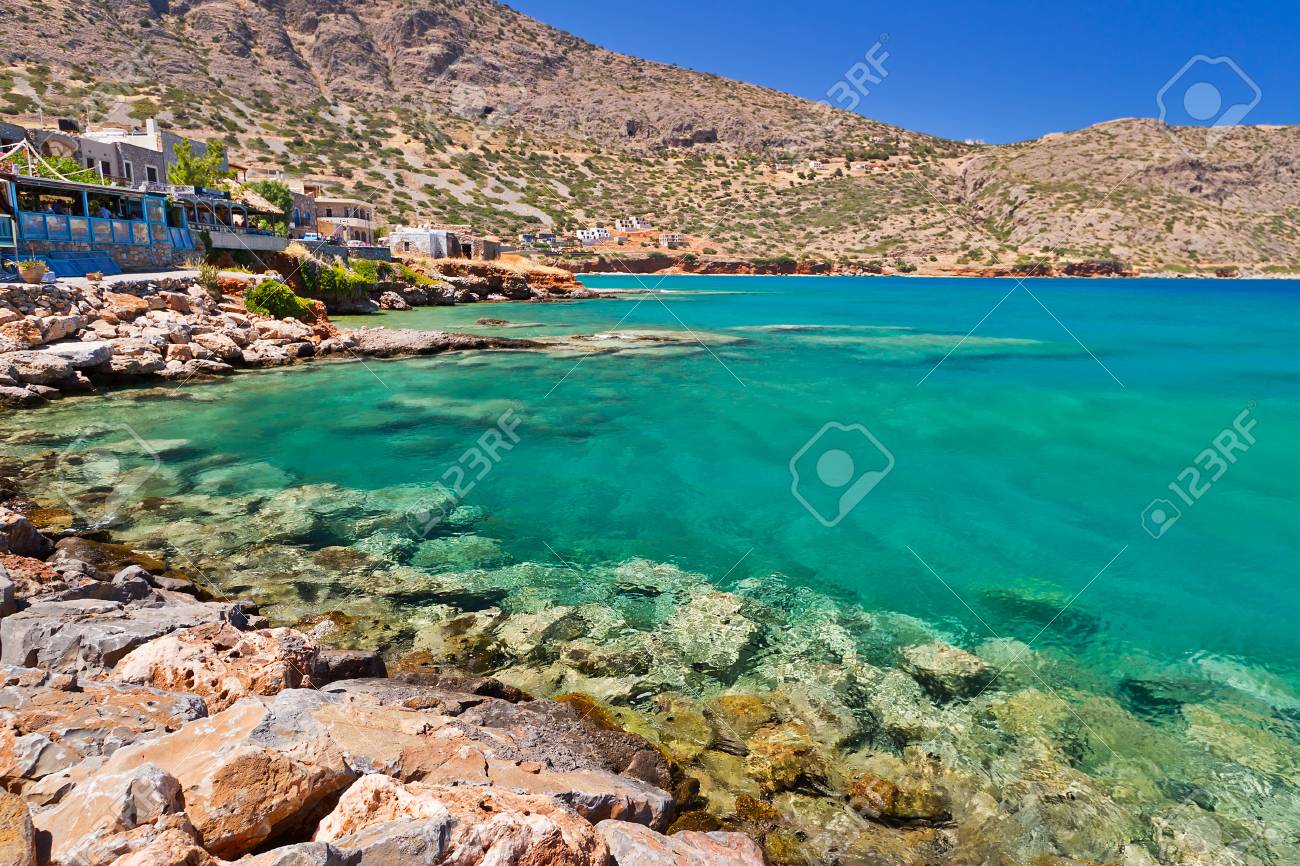 Eau Turquoise De La Baie De Mirabello Dans La Ville De Plaka En Crete Grece Banque D Images Et Photos Libres De Droits Image