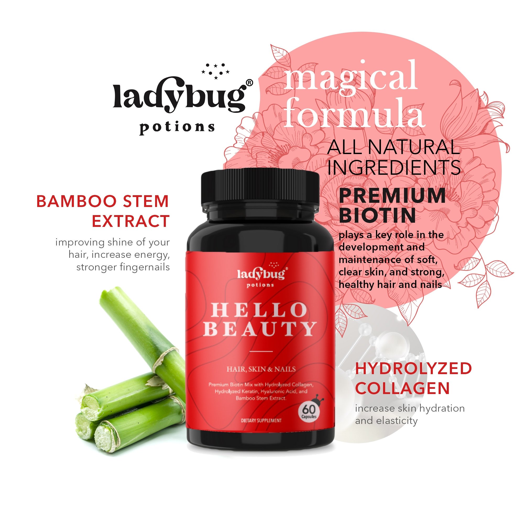 Ladybug Potions Hello Beauty Biotin Vitamins Capsules For Hair Skin And Nails With Biotin 5000mcg 60 Capsules Walmart Com Walmart Com