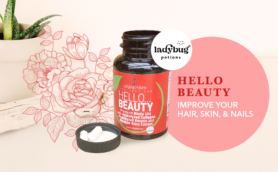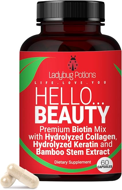 Amazon Com Hello Beauty Hair Skin And Nails Vitamins Biotin Vitamins For Hair Skin And Nails Collagen Capsules With Biotin 5000mcg 60 Capsules Ladybug Potions Health Personal Care
