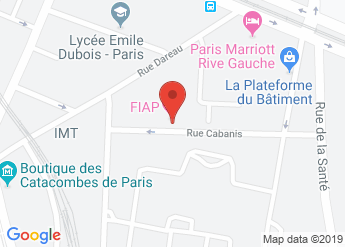 FIAP Paris 30 rue Cabanis Paris Tel 33 (0) 1 43 13 17 00 wwwfiapparisorg See the map Subway Glacière RER DenfertRochereau SNCF Gare Montparnasse Bus 21 Car park/Parking Public car park nearby Disability Offer adapted to disabled visitors Mental. Book FIAP Jean Monnet, Paris on Tripadvisor See 351 traveller reviews, 102 candid photos, and great deals for FIAP Jean Monnet, ranked #53 of 407 hotels in Paris and rated 35 of 5 at Tripadvisor. La rue Cabanis est une voie située dans le quartier du ParcdeMontsouris du 14e arrondissement de Paris, en France Wiki Les images peuvent faire l'objet de droits d'auteur.