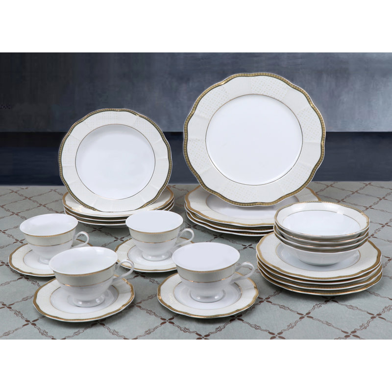 Lorren Home Trends Wavy Fine 24 Piece Bone China Dinnerware Set Service For 4 Reviews Wayfair