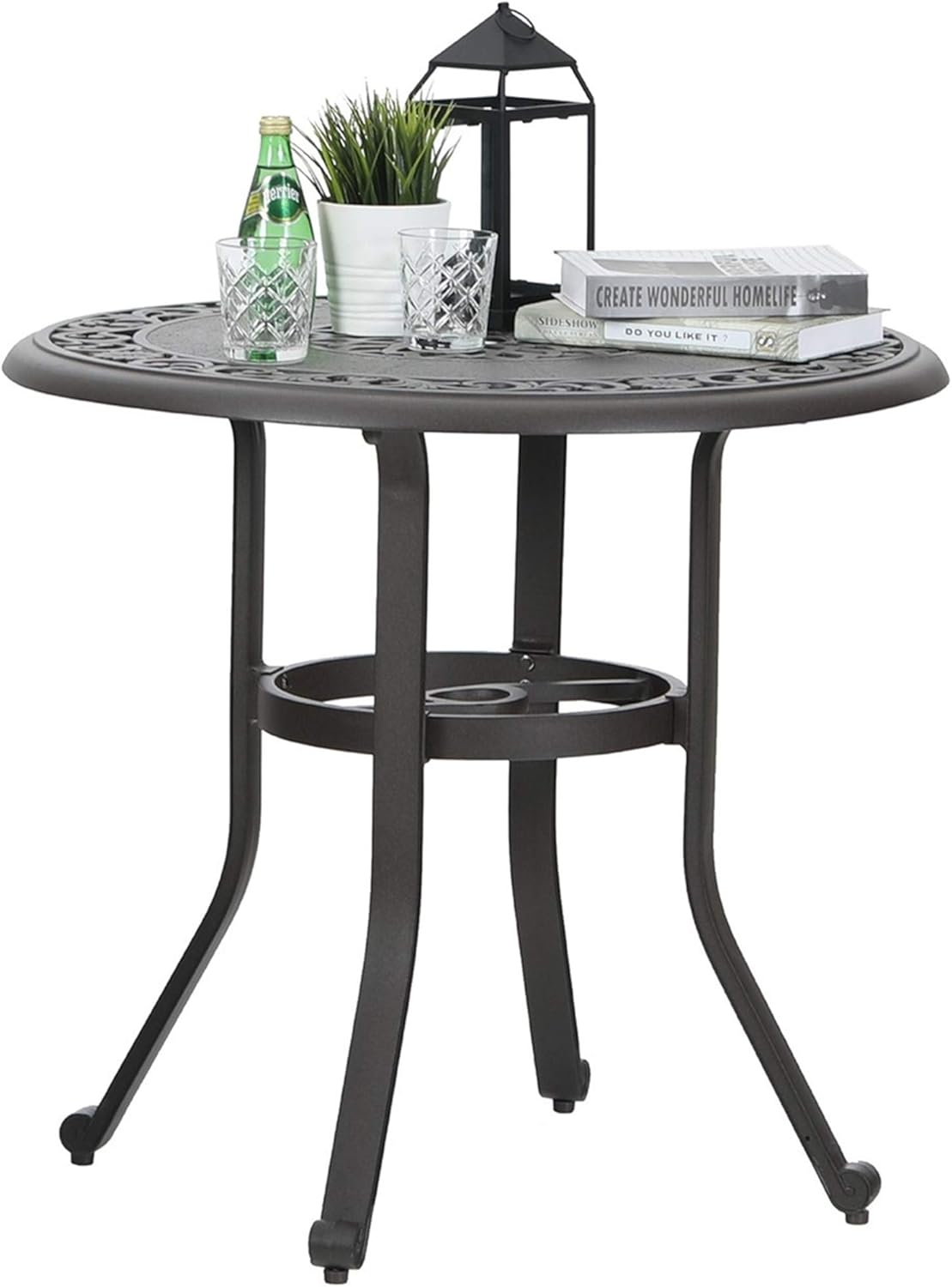 Amazon Com Sophia William Outdoor Patio Dining Table Round Modern Cast Aluminum Outdoor Furniture Dining Table With Umbrella Hole 31 5 Dia X 29 1 H Kitchen Dining