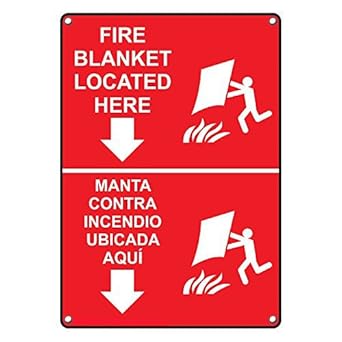 Amazon Com Weatherproof Plastic Vertical Fire Blanket Located Here Bilingual Sign With English Spanish Text And Symbol Industrial Scientific