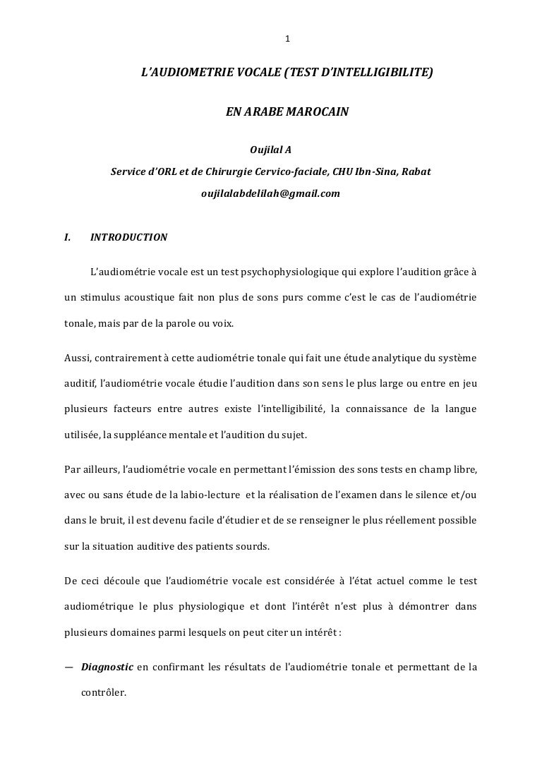 Guide Pratique Sur L Audiometrie Vocale En Arabe Marocain