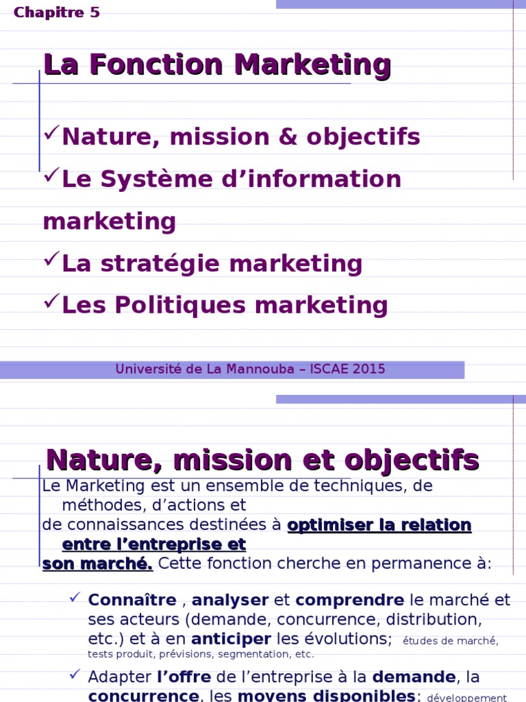 Chapitre 5 La Fonction Marketing Strategie Marketing Commercialisation