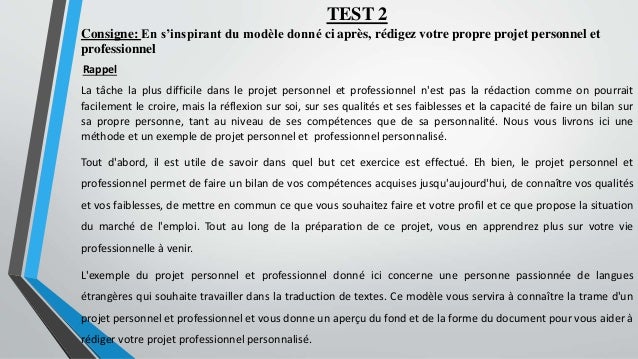 Le projet professionnel implique un questionnement sur soi tant au niveau personnel que professionnel Il se construit sur une certaine durée et demande une longue réflexion Il présente un bilan de ses compétences, de ses expériences et de ses objectifs professionnels N'ayez pas peur de faire un projet professionnel. À propos de l'auteur Ingénieur de formation, Mathieu Vénisse décide, en février 12, de changer de vie Il crée PenseretAgirfr, le site sur lequel il développe son approche innovante du développement personnel baptisée "Le développement personnel par l'Action"Aujourd'hui, Penser et Agir est reconnu comme étant le blog leader sur la thématique du changement de vie avec plus de. Les étapes des bilans personnel et professionnel L'objectif d'un bilan est de vous aider à analyser votre passé professionnel mais aussi personnel pour bien rédiger votre CV Une partie de ce bilan peut se faire par autoévaluation mais nous vous conseillons de demander l'aide ou l'avis d'une ou de plusieurs personnes dans votre.