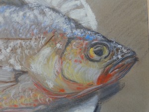 Fish On A Plate Charcoal Origingal Here Fishy Fishy Hard Pastel Ebay