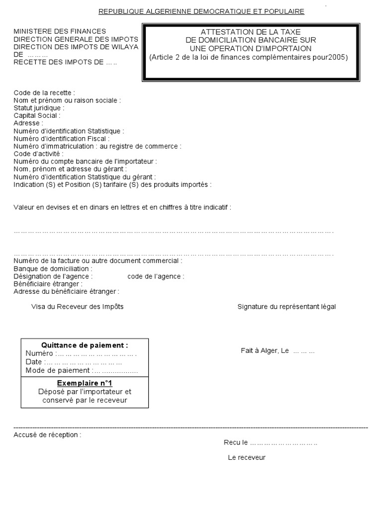 Www Mfdgi Gov Dz Images Imprimes Domiciliation bancaire Pdf