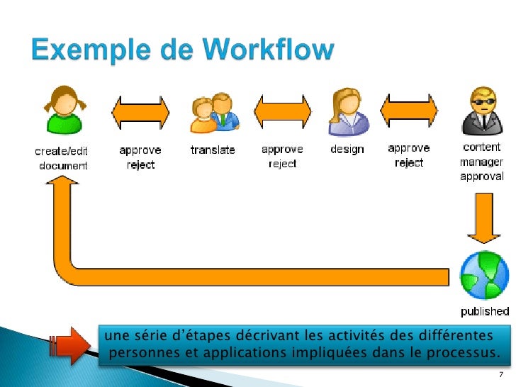 • Exemples de Workflow un système de rédaction coopérative pour mettre sous Intranet la documentation professionnelle de l'entreprise • Les contributions, validations, approbations etc parcourent un workflow qui automatise l'adressage et permet le contrôle des délais un workflow pour la signature des conventions de partenariat • actuellement, ces conventions suivent des parcours compliqués et les délais de signature sont aléatoires 78 A quoi ça sert ?. Defining the Workflow's Availability Workflows can be launched through a drop down list on the summary screen of every document Into the Activation tab, you can decide for which type of document the workflow you do will be usable, for which group of users, etc From the workflow, click on the Activation tab;. A production workflow is a stepbystep process that allows you to understand how components must come together to produce a finished product Production workflows are important for training new team members, scaling your business, and doing good work without having to reinvent the wheel.