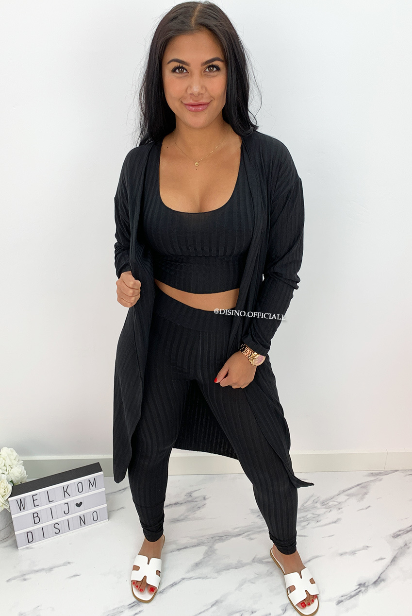 Black Chloe Mae Ribbed Summer 3 Piece Set Disino Fashion Boutique