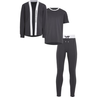 Boys Grey 3 Piece Cardigan Outfit River Island