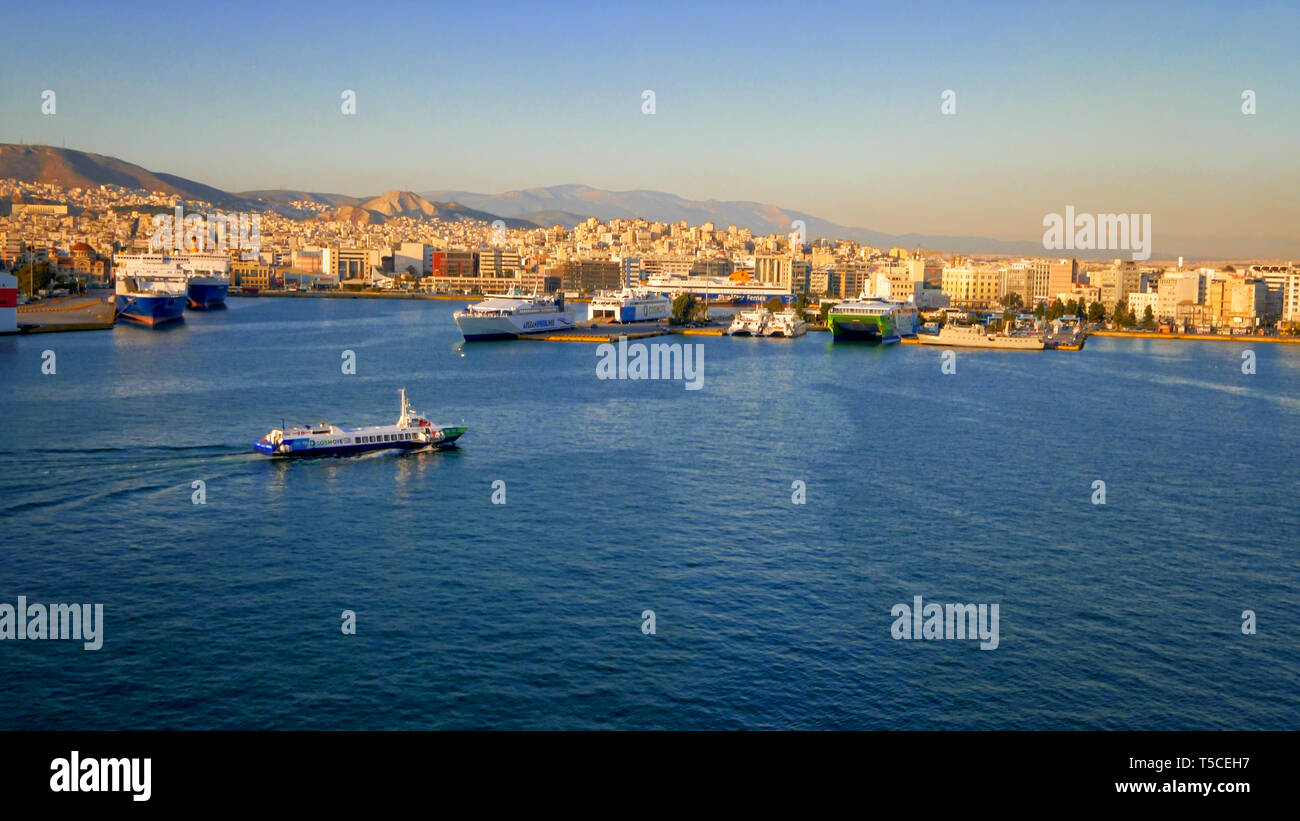 Trois d'entre elles concernent des études entreprises par l'Organisme du Port du Pirée Three decisions concerned studies undertaken by the Piraeus port authority Professeur au département d'études internationales et européennes de l'Université du Pirée (depuis 01) Professor of international and European studies at the University of Piraeus (from 01). Le Pirée (grec ancien ὁ Πειραιεύς / ho Peiraieús, grec moderne ο Πειραιάς / Pireás) est le principal port d'AthènesIl est aussi le premier port et le principal centre industriel de GrèceIl est le point de départ des voyageurs vers les îles de la mer Égée Il est situé dans la région d'Attique (appelée jusqu'en 10 nomarchie du Pirée, maintenant. PORT DU PIREE A ATHENES, GRECE Get premium, high resolution news photos at Getty Images.