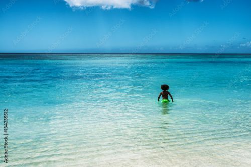 Young African Boy Standing In Crystal Clear Water On Tropical Island Plexiglas