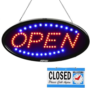 Amazon Com Led Open Sign Agptek 19x10inch Led Business Open Sign Advertisement Board Electric Display Sign Two Modes Flashing Steady Light For Business Walls Window Shop Bar Hotel With Open Close Sign