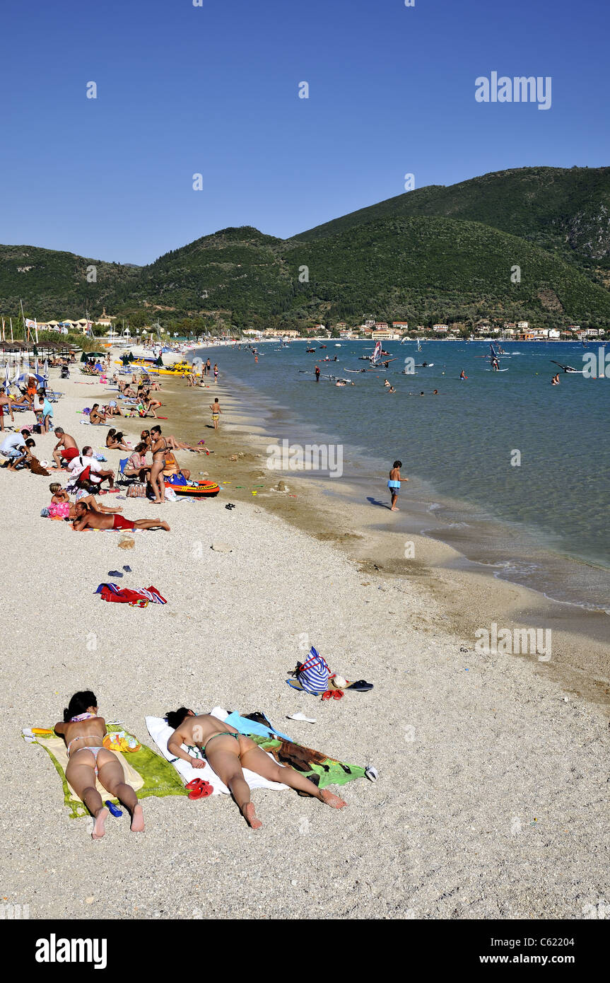 Plage D Agios Nikitas A L Ile De Leucade Grece Iles Ioniennes En Arriere Plan On Voit Le Village D Agios Nikitas Banque D Images Et Photos Libres De Droits Image